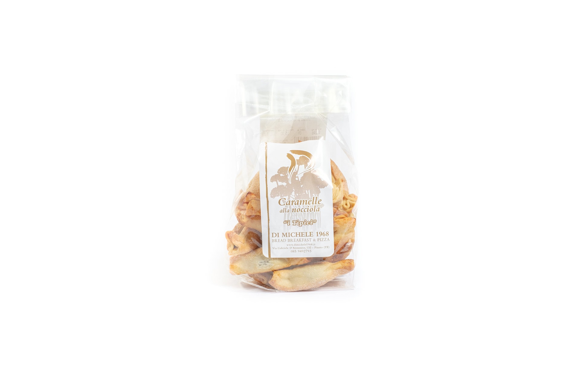 Questi dolcetti sono una variante dei Taralli alla Marmellata di Uva. La loro realizzazione è frutto dell’abilità manuale delle nostre collaboratrici che, con una sfoglia sottilissima, “incartano” come una caramella un cremoso cuore di nocciola. Il loro goloso ripieno le rende molto apprezzate dai bambini e, perchè no, anche dagli adulti.